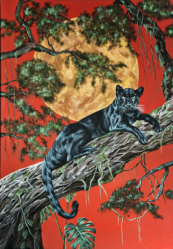 90 x 65 cm - Acrylic, gold leafs & metallic varnish
